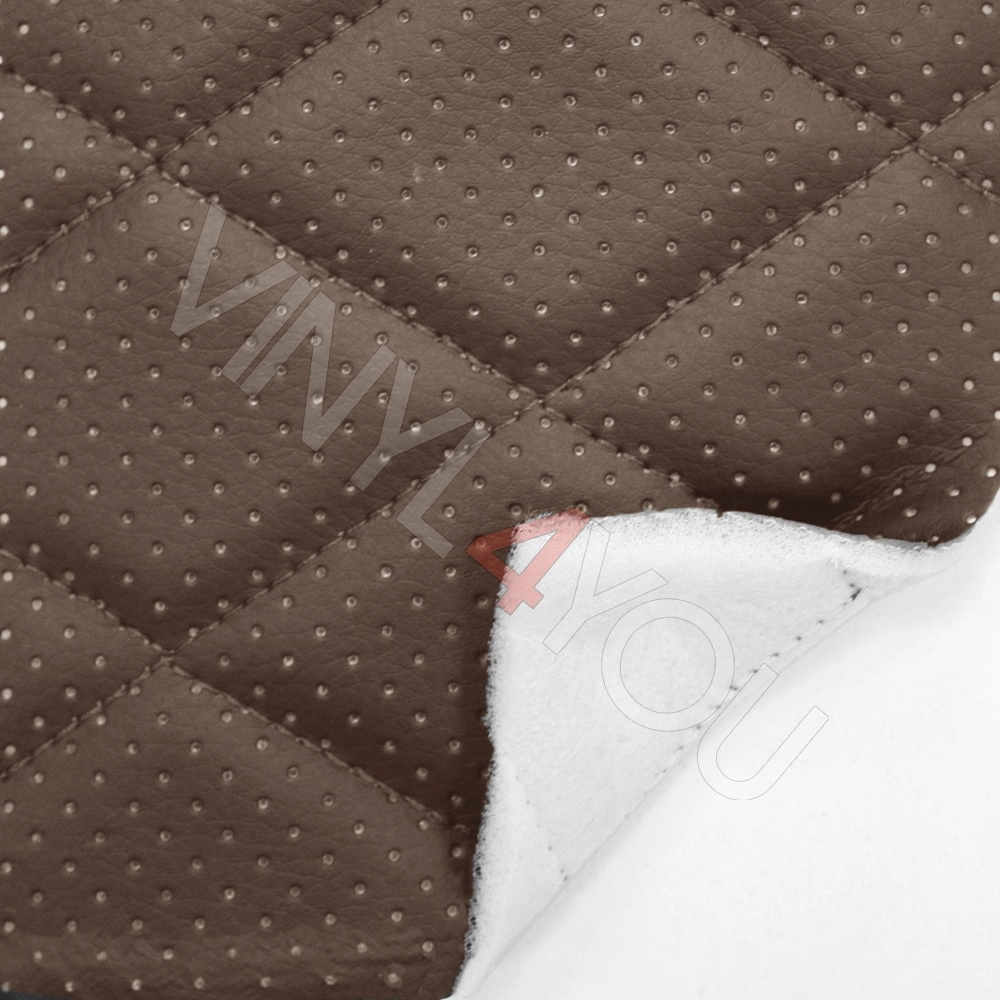 Экокожа стеганая перфорированная Орегон Кофейная с Кофейной строчкой