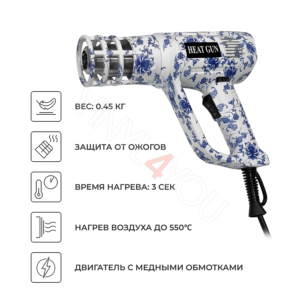 Профессиональный термофен для оклейки и тонировки (Blue Flower)